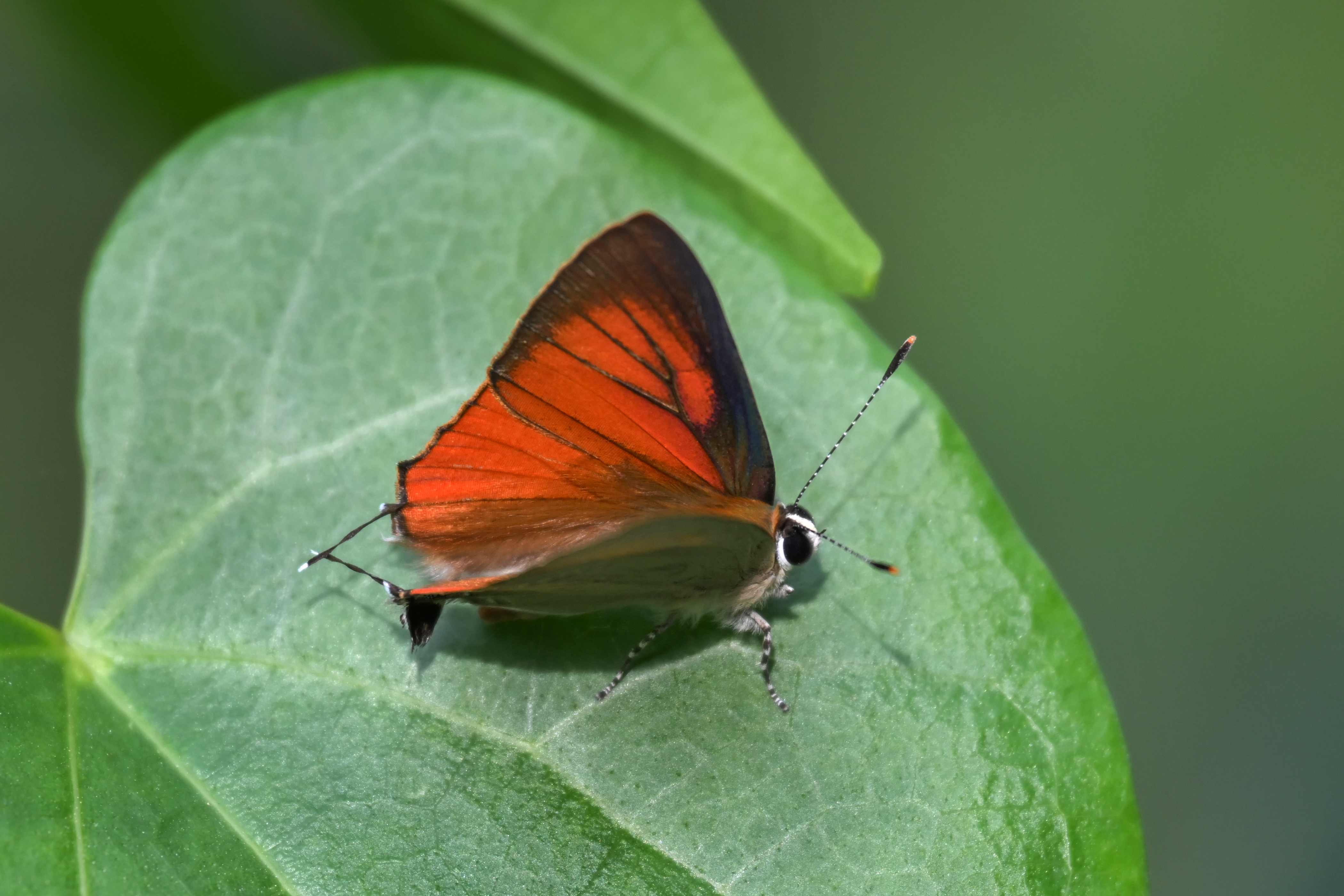 Rapala iarbus, the common red flash, is a species of lycaenid butterfly found in South. and Southeast Asia. It is a small sized butterfly with a wingspan of 3.3 to 4.1 cms. It is found across India except in the arid regions of Northwest and Northeast. Wikipedia
